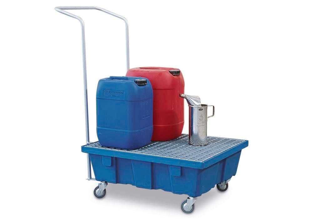 Fahrbare Auffangwanne PolySafe FSR 6.2 aus Polyethylen (PE) mit verz. Gitterrost, für 1 Fass à 60 l