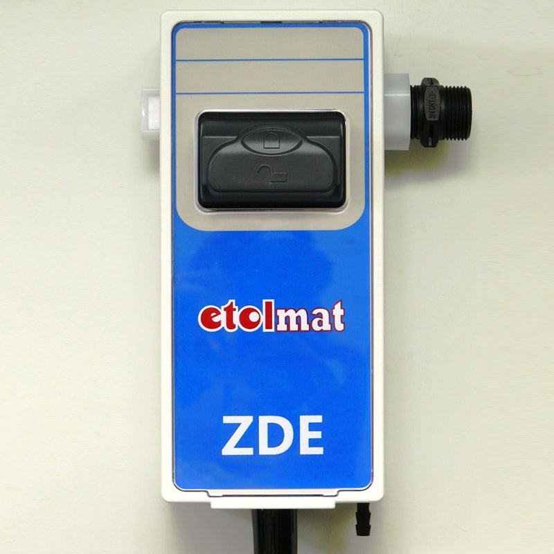 Injektorgesteuertes automatisches Zumischdosiergerät zur Eimerbefüllung mit einem flüssigen Produkt